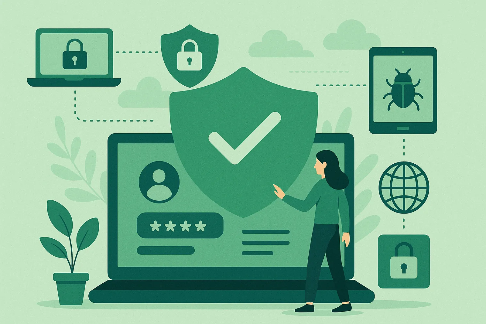 - Cómo: activa Windows Update/macOS, actualiza navegador y apps. Antivirus/EDR ligero (Microsoft Defender, Malwarebytes, o plan Business de tu suite).