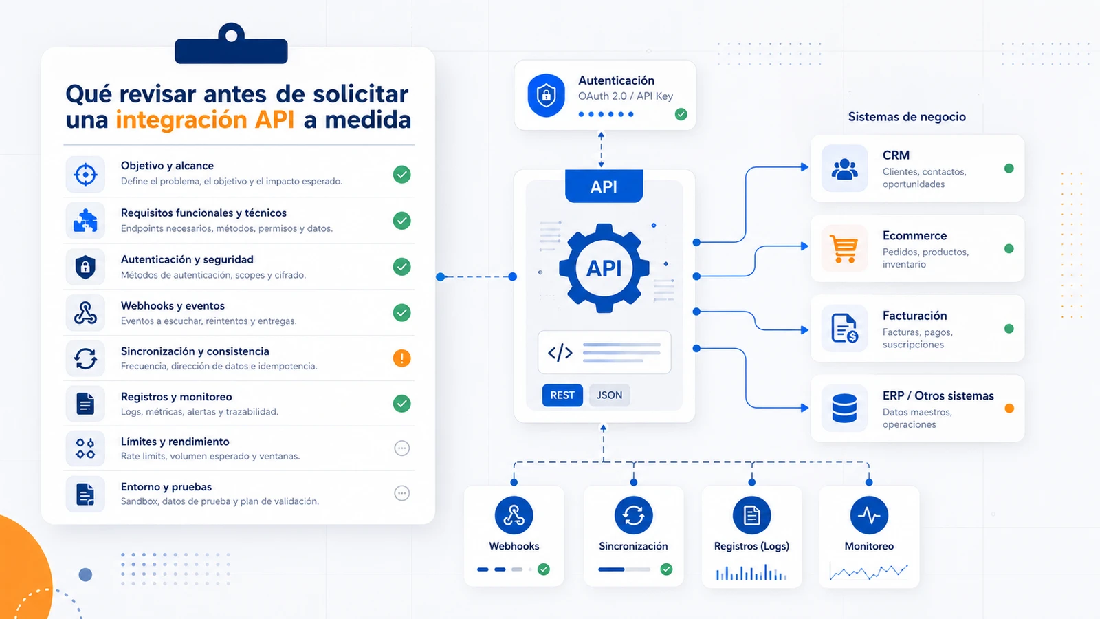 Checklist práctico para preparar una integración API a medida sin errores de alcance, datos ni operativa.